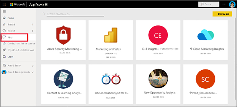Un’app è un tipo di contenuto di Power BI che combina dashboard, report, cartelle di lavoro e altro ancora in un’unica posizione. Un’app può avere uno più dashboard e uno o più report aggregati. I progettisti di Power BI creano app e distribuiscono e condividono le app con utenti aziendali come te.Un modo per visualizzare le app consiste nel selezionare App nel riquadro di spostamento e scegliere un’app da aprire.