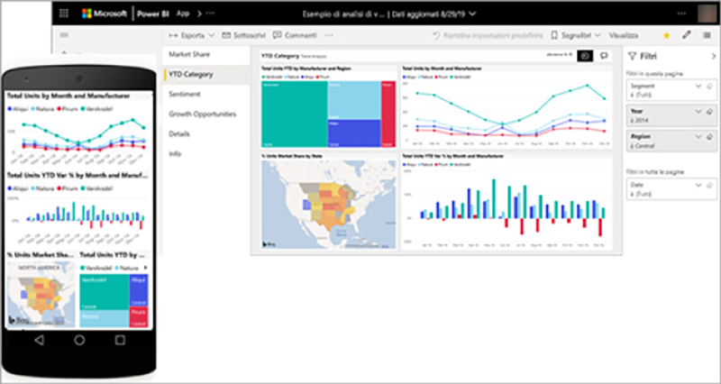 I dati possono essere un semplice foglio di Excel o una raccolta di dati provenienti da fonti diverse; Power BI consente di connettersi facilmente alle origini dati, visualizzare cosa è importante e condividerlo con tutti gli utenti desiderati.